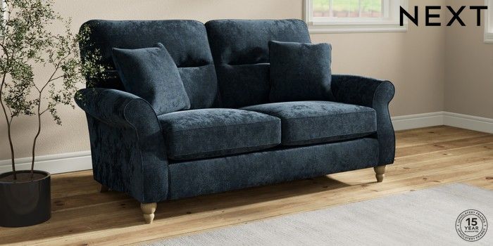 7.2.10 Ashford Highback 2 Seater Sofa Distressed Velour Midnight Blue Low Turned - Light | Made Click here to use our website with more accessibility support, for example screen readers