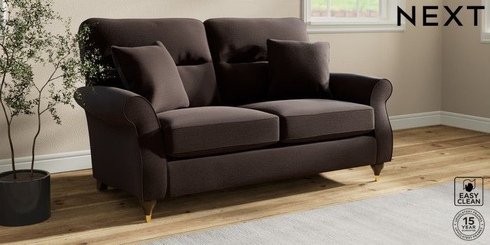 7.2.10 Ashford Highback 2 Seater Sofa Fine Chenille Easy Clean Chocolate Brown Modern Turned Metal Cap - Mid | Made Click here to use our website with more accessibility support, for example screen readers