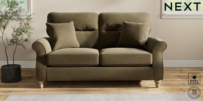 7.2.10 Ashford Highback 2 Seater Sofa Fine Chenille Easy Clean Dark Moss Green Low Turned - Light | Made Click here to use our website with more accessibility support, for example screen readers
