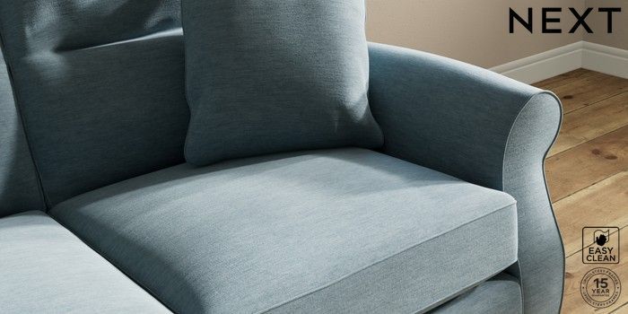 7.2.10 Ashford Highback 2 Seater Sofa Fine Chenille Easy Clean Mid Blue Low Turned - Light | Made Click here to use our website with more accessibility support, for example screen readers