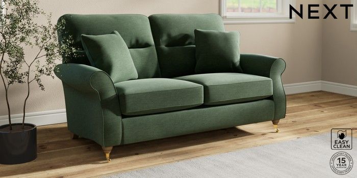 7.2.10 Ashford Highback 2 Seater Sofa Fine Chenille Easy Clean Mid Khaki Green Castor - Light | Made Click here to use our website with more accessibility support, for example screen readers
