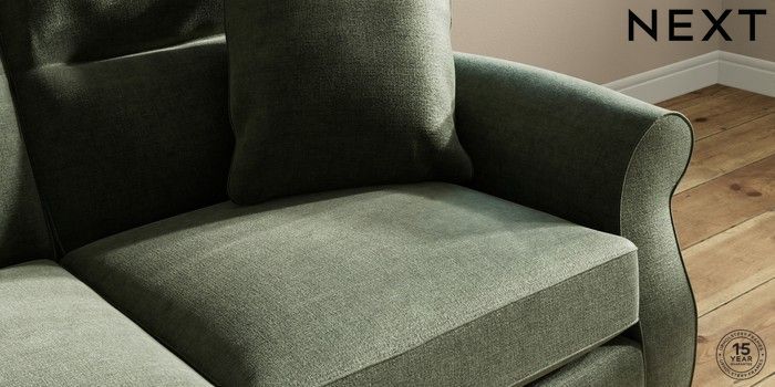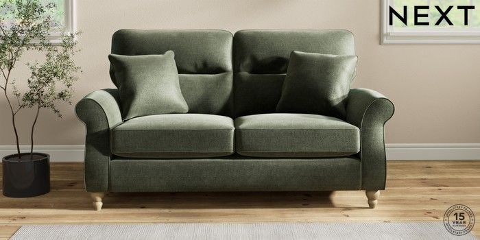7.2.10 Ashford Highback 2 Seater Sofa Luxe Chenille Mid Green Low Turned - Light | Made Click here to use our website with more accessibility support, for example screen readers
