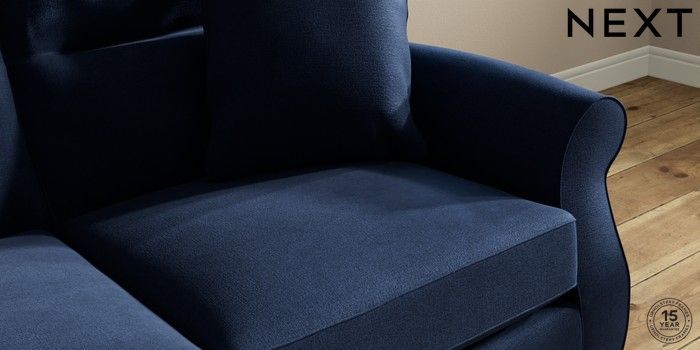7.2.10 Ashford Highback 2 Seater Sofa Luxe Chenille Navy Blue Modern Turned Metal Cap - Mid | Made Click here to use our website with more accessibility support, for example screen readers