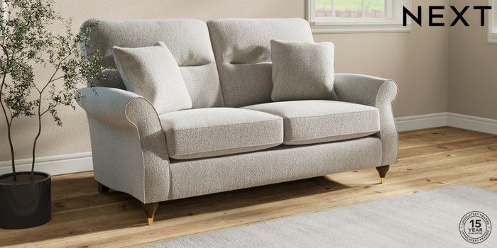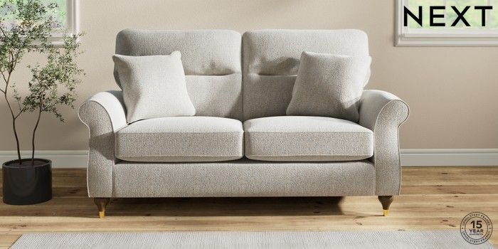 7.2.10 Ashford Highback 2 Seater Sofa Multi Weave Light Blue Modern Turned Metal Cap - Mid | Made Click here to use our website with more accessibility support, for example screen readers