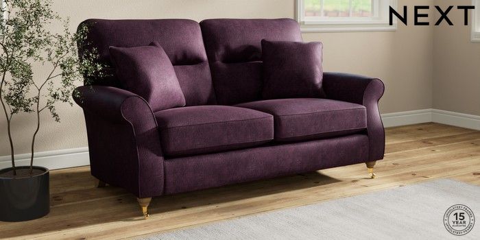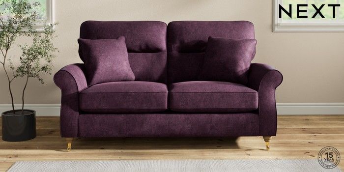 7.2.10 Ashford Highback 2 Seater Sofa Plush Chenille Dark Plum Purple Castor - Light | Made Click here to use our website with more accessibility support, for example screen readers