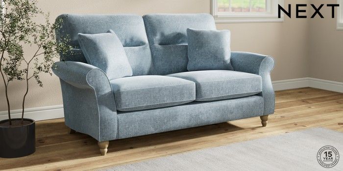 7.2.10 Ashford Highback 2 Seater Sofa Plush Chenille Light Blue Low Turned - Light | Made Click here to use our website with more accessibility support, for example screen readers