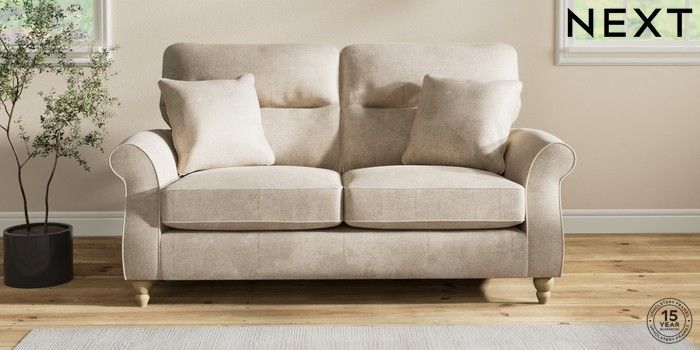 7.2.10 Ashford Highback 2 Seater Sofa Plush Chenille Light Natural Low Turned - Light | Made Click here to use our website with more accessibility support, for example screen readers