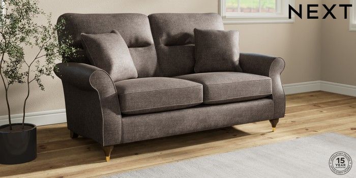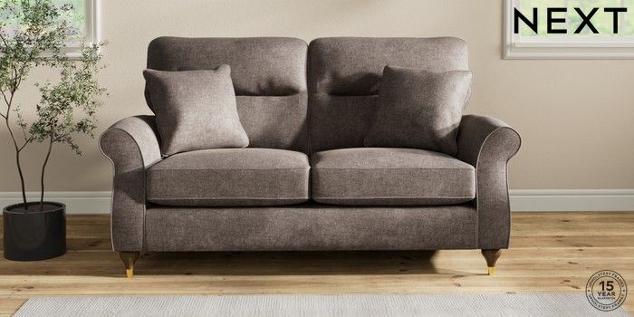 7.2.10 Ashford Highback 2 Seater Sofa Plush Chenille Mink Brown Modern Turned Metal Cap - Mid | Made Click here to use our website with more accessibility support, for example screen readers