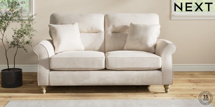 7.2.10 Ashford Highback 2 Seater Sofa Plush Chenille Oyster Low Turned - Light | Made Click here to use our website with more accessibility support, for example screen readers