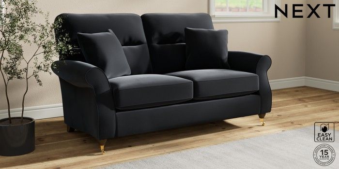 7.2.10 Ashford Highback 2 Seater Sofa Plush Velvet Easy Clean Charcoal Grey Castor - Mid | Made Click here to use our website with more accessibility support, for example screen readers