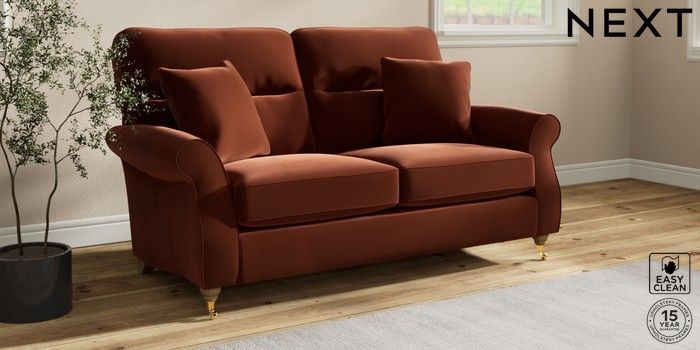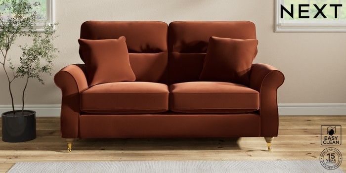 7.2.10 Ashford Highback 2 Seater Sofa Plush Velvet Easy Clean Ginger Orange Castor - Light | Made Click here to use our website with more accessibility support, for example screen readers