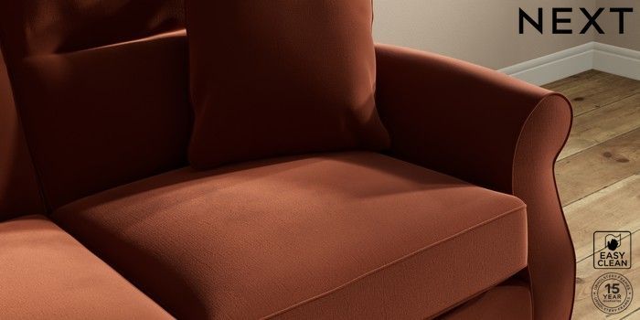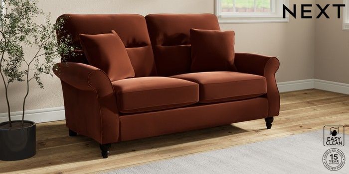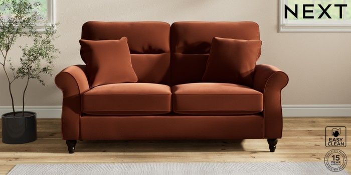 7.2.10 Ashford Highback 2 Seater Sofa Plush Velvet Easy Clean Ginger Orange Low Turned - Dark | Made Click here to use our website with more accessibility support, for example screen readers