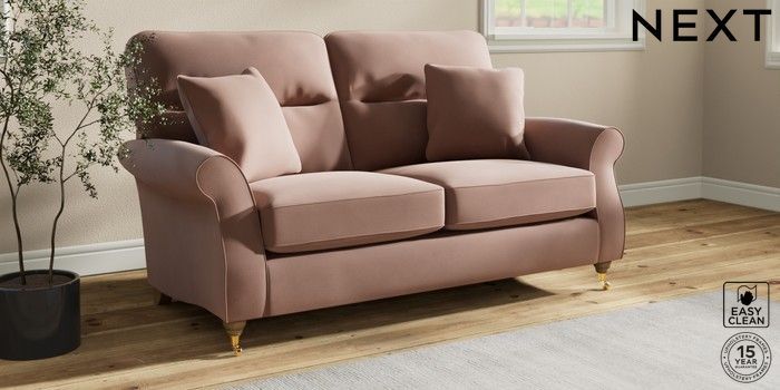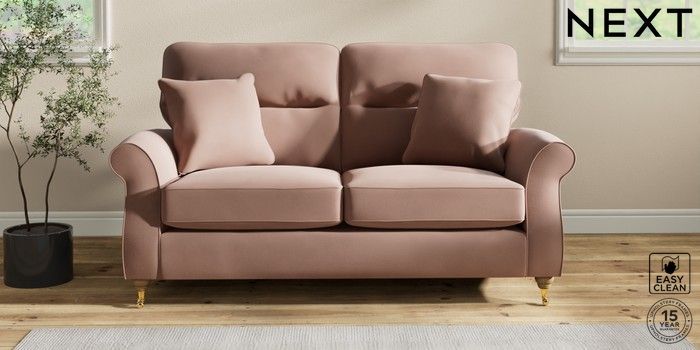 7.2.10 Ashford Highback 2 Seater Sofa Plush Velvet Easy Clean Mid Natural Castor - Light | Made Click here to use our website with more accessibility support, for example screen readers