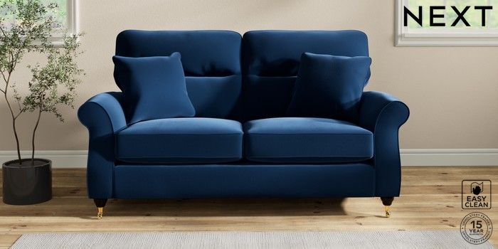 7.2.10 Ashford Highback 2 Seater Sofa Plush Velvet Easy Clean Navy Blue Castor - Dark | Made Click here to use our website with more accessibility support, for example screen readers