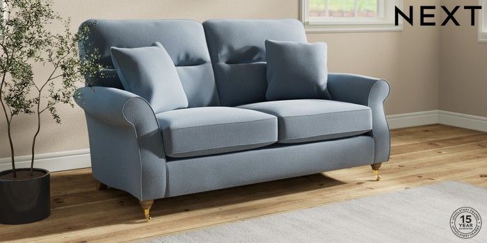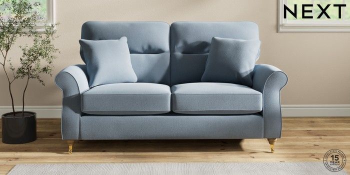 7.2.10 Ashford Highback 2 Seater Sofa Relaxed Linen Look Mid Blue Castor - Light | Made Click here to use our website with more accessibility support, for example screen readers