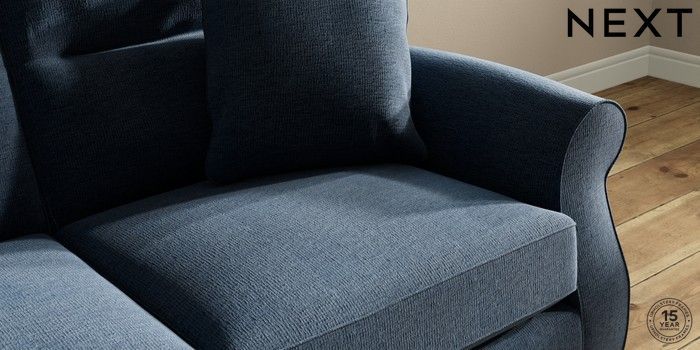 7.2.10 Ashford Highback 2 Seater Sofa Ripple Chenille Dark Blue Castor - Light | Made Click here to use our website with more accessibility support, for example screen readers