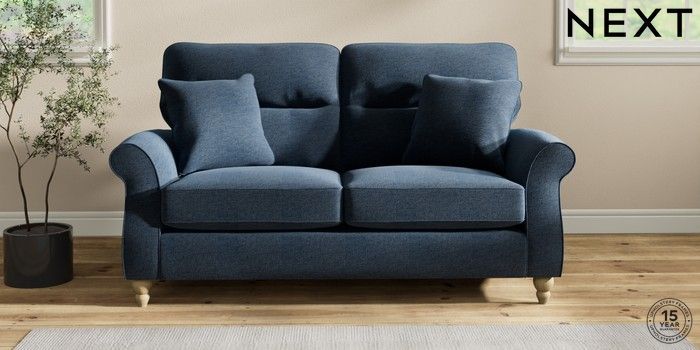 7.2.10 Ashford Highback 2 Seater Sofa Ripple Chenille Dark Blue Low Turned - Light | Made Click here to use our website with more accessibility support, for example screen readers