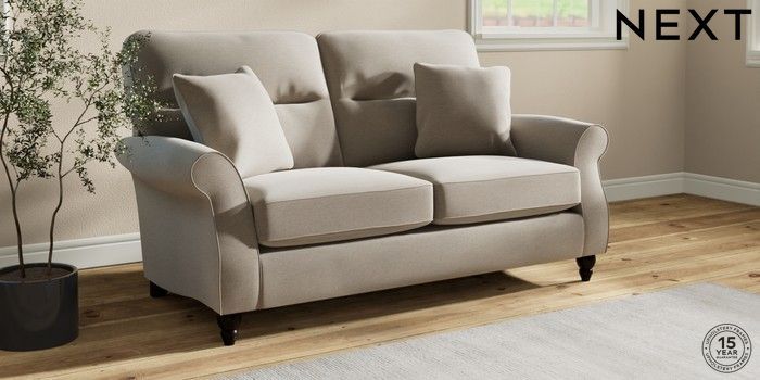 7.2.10 Ashford Highback 2 Seater Sofa Ripple Chenille Light Natural Low Turned - Dark | Made Click here to use our website with more accessibility support, for example screen readers