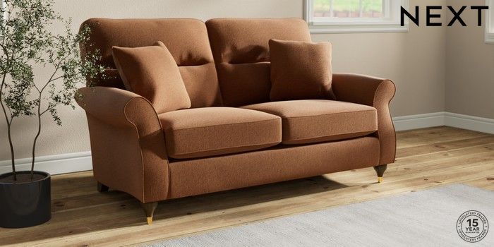 7.2.10 Ashford Highback 2 Seater Sofa Ripple Chenille Mid Rust Brown Modern Turned Metal Cap - Mid | Made Click here to use our website with more accessibility support, for example screen readers