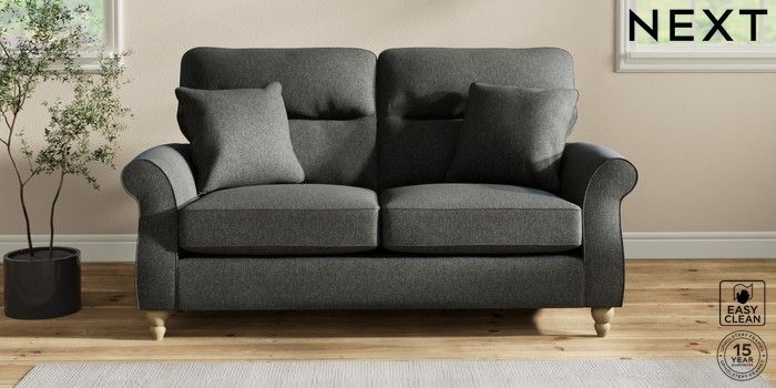 7.2.10 Ashford Highback 2 Seater Sofa Tweedy Blend Easy Clean Charcoal Grey Low Turned - Light | Made Click here to use our website with more accessibility support, for example screen readers