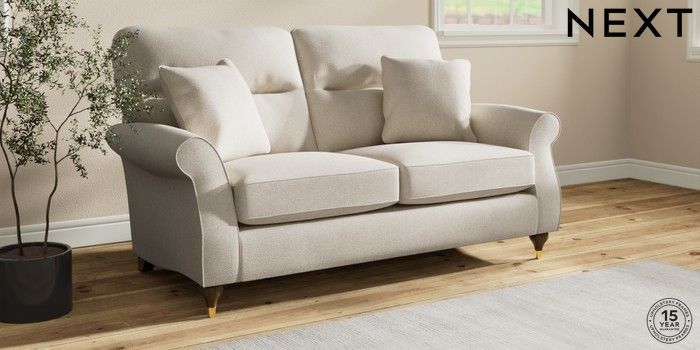 7.2.10 Ashford Highback 2 Seater Sofa Tweedy Chenille Oyster Modern Turned Metal Cap - Mid | Made Click here to use our website with more accessibility support, for example screen readers