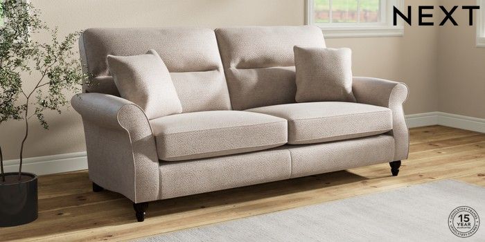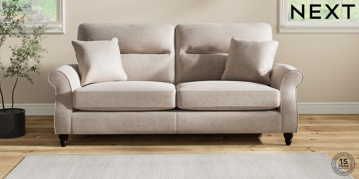 7.2.10 Ashford Highback 3 Seater Sofa Boucle Chenille Light Natural Low Turned - Dark | Made Click here to use our website with more accessibility support, for example screen readers