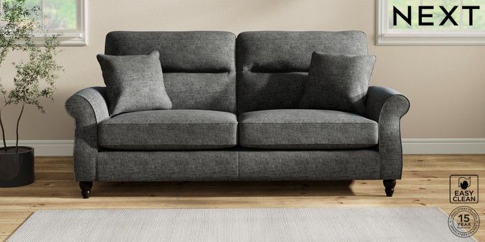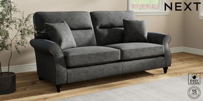 7.2.10 Ashford Highback 3 Seater Sofa Boucle Weave Easy Clean Charcoal Grey Low Turned - Dark | Made Click here to use our website with more accessibility support, for example screen readers