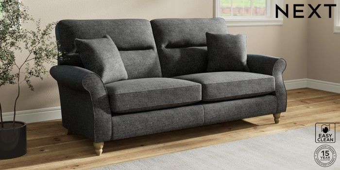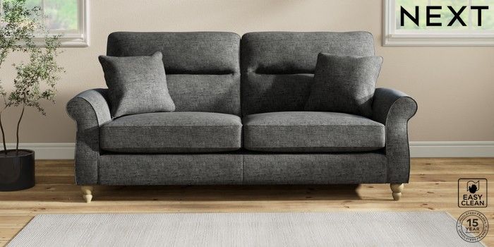 7.2.10 Ashford Highback 3 Seater Sofa Boucle Weave Easy Clean Charcoal Grey Low Turned - Light | Made Click here to use our website with more accessibility support, for example screen readers