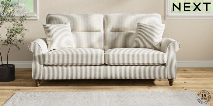 7.2.10 Ashford Highback 3 Seater Sofa Chenille Stripe Moss Green Low Turned - Mid | Made Click here to use our website with more accessibility support, for example screen readers