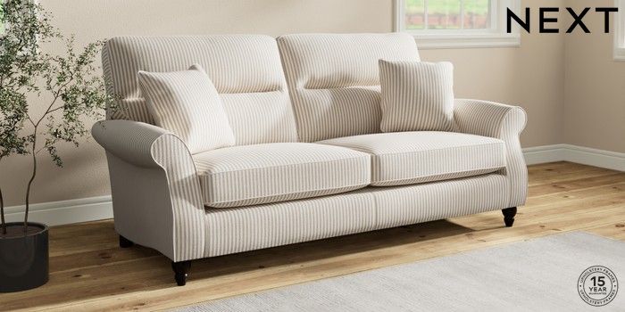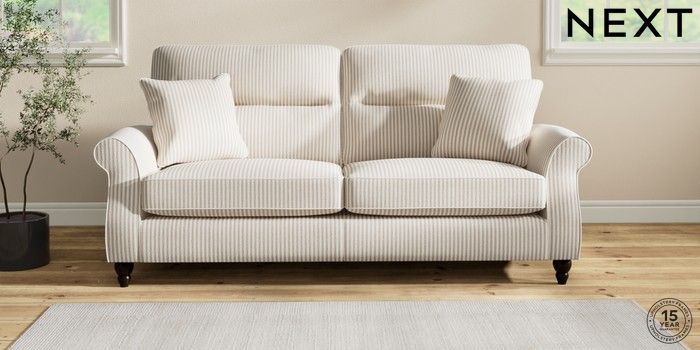 Sink into the Ashford high-back sofa, where country style meets ultimate comfort. Its generous size and elegant scroll arms give it a classic look. You'll love the extra back support from its higher design. The seats are designed for firm support and long-lasting comfort, with a special firmer high-density foam core sandwiched between soft foam toppers to give ultimate support, durability and recovery whilst offering a more tailored look that bounces back into shape – no need for constant plumping! These seat cushions are low maintainence and will return to their shape when they are not in use. We've added scatter cushions filled with a luxurious fibre mix for added comfort. Seat cushions are reversible.