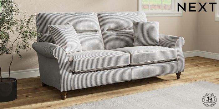 7.2.10 Ashford Highback 3 Seater Sofa Chenille Stripe Slate Blue Low Turned - Mid | Made Click here to use our website with more accessibility support, for example screen readers