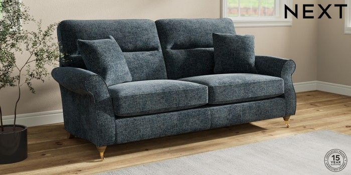 7.2.10 Ashford Highback 3 Seater Sofa Chunky Chenille Dark Navy Blue Castor - Light | Made Click here to use our website with more accessibility support, for example screen readers