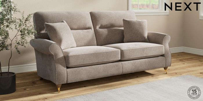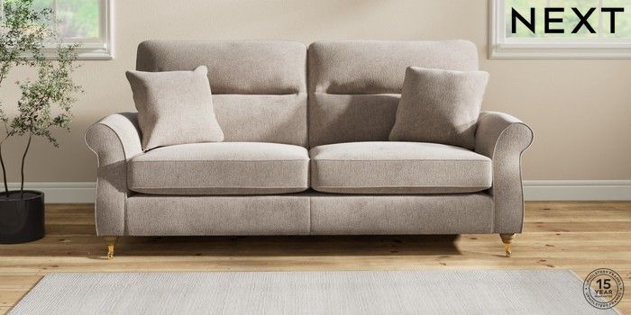 7.2.10 Ashford Highback 3 Seater Sofa Chunky Chenille Light Dove Castor - Light | Made Click here to use our website with more accessibility support, for example screen readers