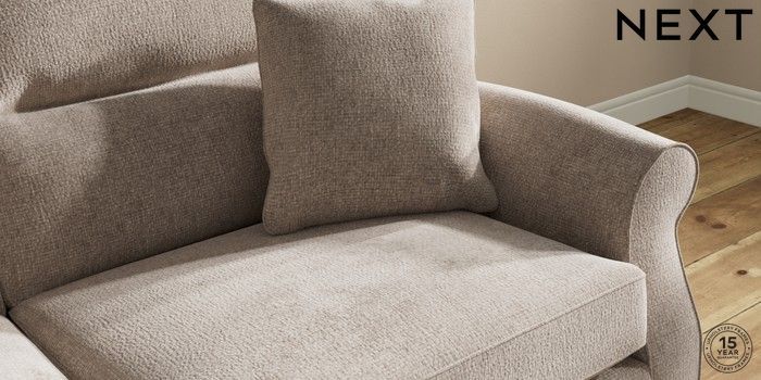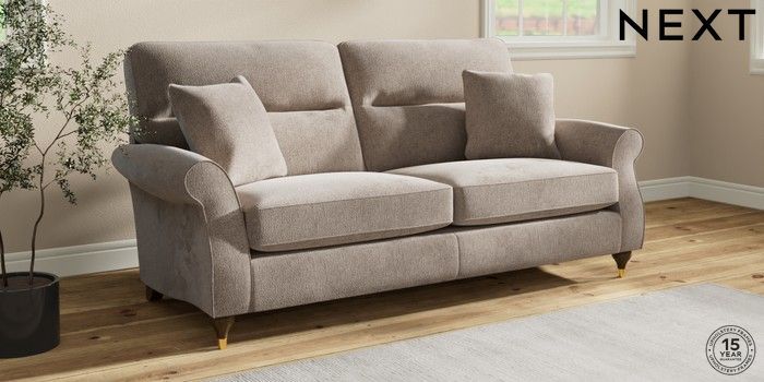 7.2.10 Ashford Highback 3 Seater Sofa Chunky Chenille Light Dove Modern Turned Metal Cap - Mid | Made Click here to use our website with more accessibility support, for example screen readers