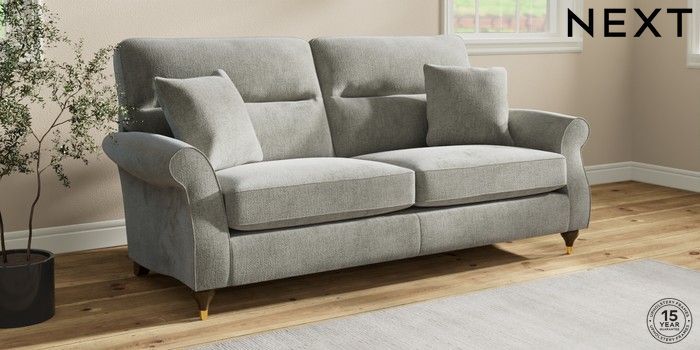 7.2.10 Ashford Highback 3 Seater Sofa Chunky Chenille Light Grey Modern Turned Metal Cap - Mid | Made Click here to use our website with more accessibility support, for example screen readers