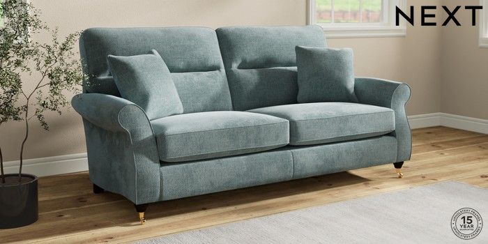 7.2.10 Ashford Highback 3 Seater Sofa Chunky Chenille Light Teal Green Castor - Dark | Made Click here to use our website with more accessibility support, for example screen readers