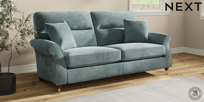 7.2.10 Ashford Highback 3 Seater Sofa Chunky Chenille Light Teal Green Castor - Mid | Made Click here to use our website with more accessibility support, for example screen readers