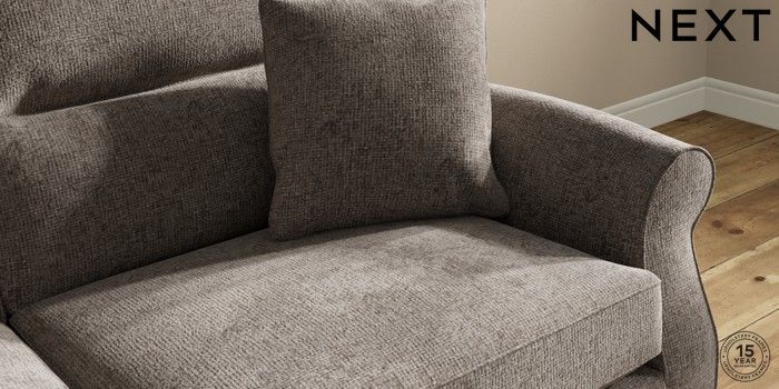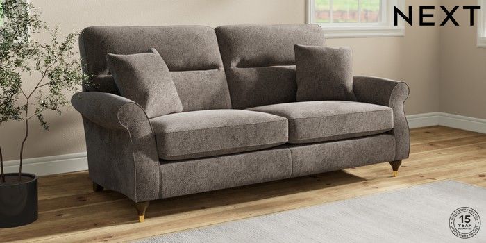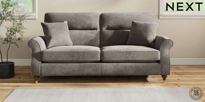 7.2.10 Ashford Highback 3 Seater Sofa Chunky Chenille Mink Brown Modern Turned Metal Cap - Mid | Made Click here to use our website with more accessibility support, for example screen readers