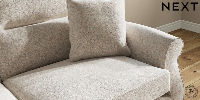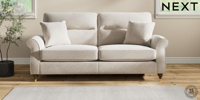 7.2.10 Ashford Highback 3 Seater Sofa Chunky Marl Oyster Modern Turned Metal Cap - Mid | Made Click here to use our website with more accessibility support, for example screen readers