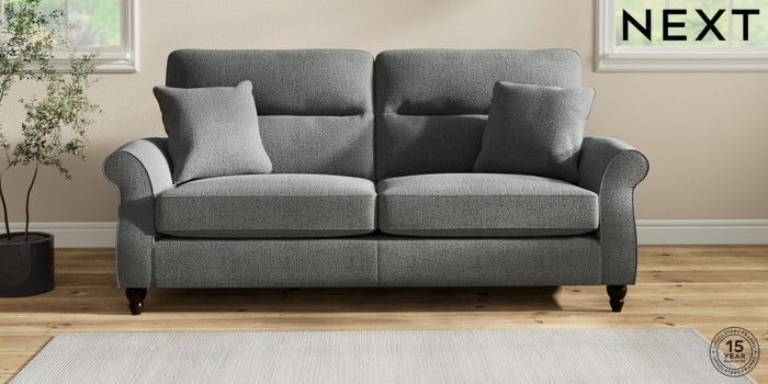 7.2.10 Ashford Highback 3 Seater Sofa Chunky Texture Dark Grey Low Turned - Dark | Made Click here to use our website with more accessibility support, for example screen readers