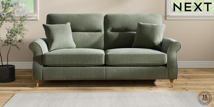 7.2.10 Ashford Highback 3 Seater Sofa Chunky Texture Mid Forest Green Castor - Light | Made Click here to use our website with more accessibility support, for example screen readers
