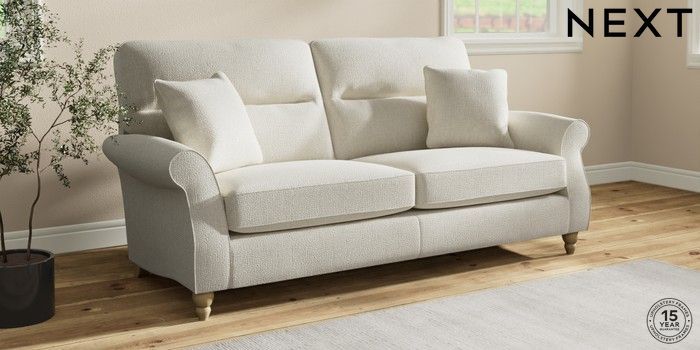 7.2.10 Ashford Highback 3 Seater Sofa Chunky Texture Oyster Low Turned - Light | Made Click here to use our website with more accessibility support, for example screen readers
