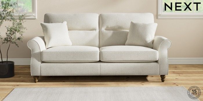 7.2.10 Ashford Highback 3 Seater Sofa Chunky Texture Oyster Low Turned - Mid | Made Click here to use our website with more accessibility support, for example screen readers