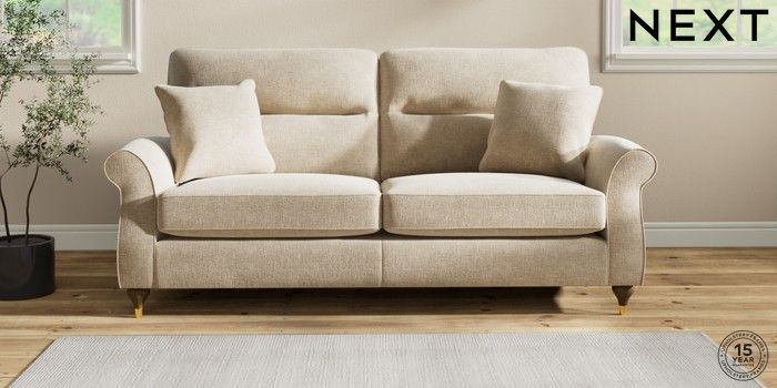 7.2.10 Ashford Highback 3 Seater Sofa Chunky Weave Cream Modern Turned Metal Cap - Mid | Made Click here to use our website with more accessibility support, for example screen readers