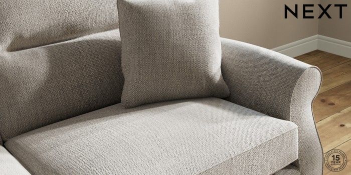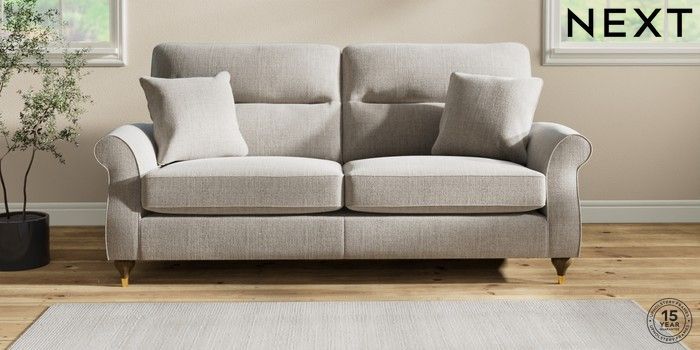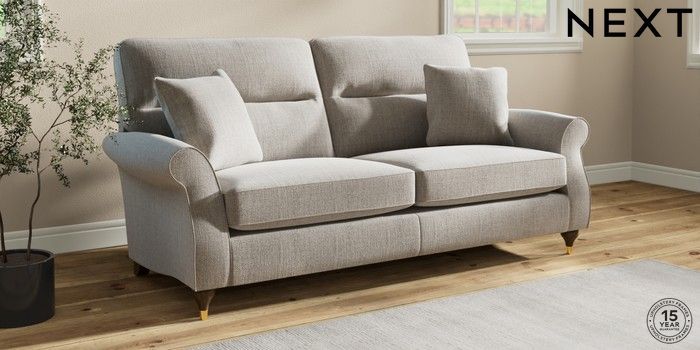 7.2.10 Ashford Highback 3 Seater Sofa Chunky Weave Dove Grey Modern Turned Metal Cap - Mid | Made Click here to use our website with more accessibility support, for example screen readers