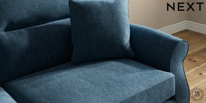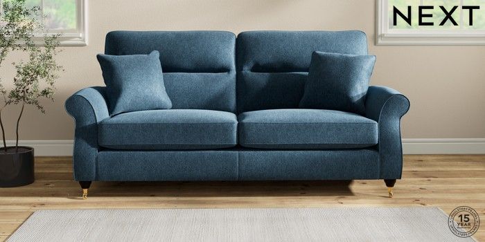 7.2.10 Ashford Highback 3 Seater Sofa Cotswold Chenille Dark Blue Castor - Dark | Made Click here to use our website with more accessibility support, for example screen readers