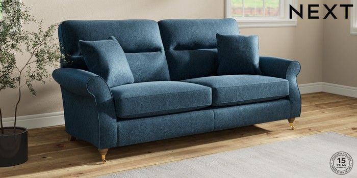 7.2.10 Ashford Highback 3 Seater Sofa Cotswold Chenille Dark Blue Castor - Light | Made Click here to use our website with more accessibility support, for example screen readers