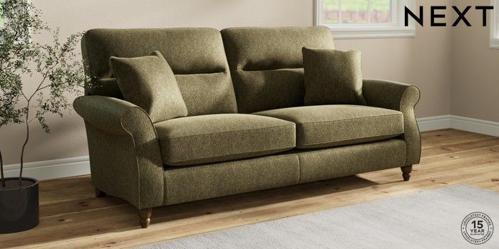 7.2.10 Ashford Highback 3 Seater Sofa Cotswold Chenille Dark Green Low Turned - Mid | Made Click here to use our website with more accessibility support, for example screen readers