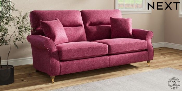 7.2.10 Ashford Highback 3 Seater Sofa Cotswold Chenille Dark Raspberry Pink Castor - Light | Made Click here to use our website with more accessibility support, for example screen readers