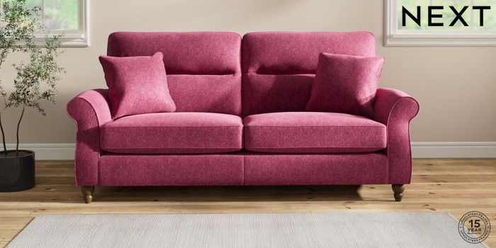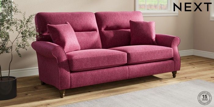 7.2.10 Ashford Highback 3 Seater Sofa Cotswold Chenille Dark Raspberry Pink Low Turned - Mid | Made Click here to use our website with more accessibility support, for example screen readers